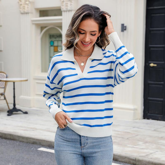 Women'S Knitting Pullovers Striped Casual Comfort Basic Long Sleeve V-Neck Sweater, Chic Lady Basic Comfort Versatile Knitwear for Daily Wear