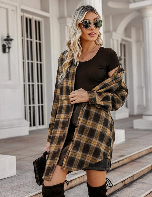 HOTOUCH Womens Flannel Plaid Shirts Roll up Long Sleeve Collared Button down Boyfriend Shirts with Pockets Blouse Casual Cotton Top Womenswear Check Dress Elegant Lightweight Loose